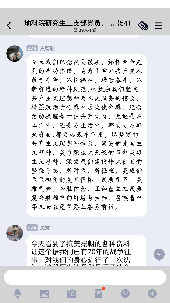 2020年11月25日,必赢76net线路官网研究生第二党支部组织开展“抗美援朝战争中汲取必胜的精气神”主题党日活动,活动在线上召开,研究生第二党支部全体党员和积极分子参与活动。