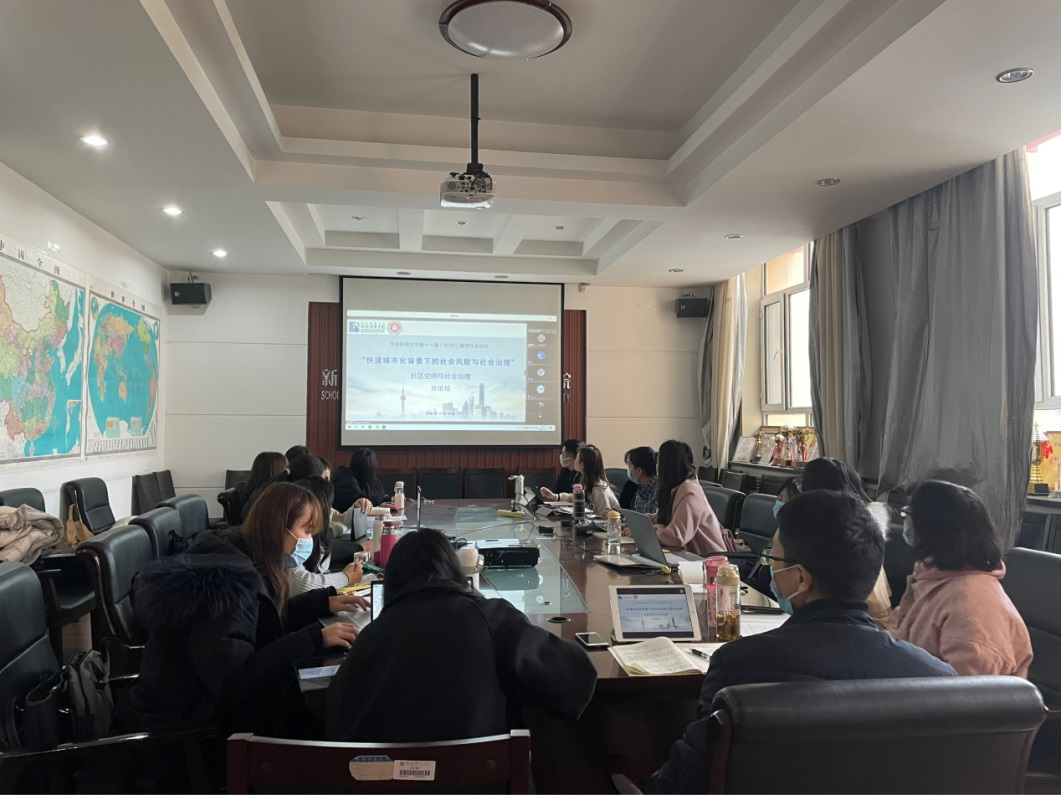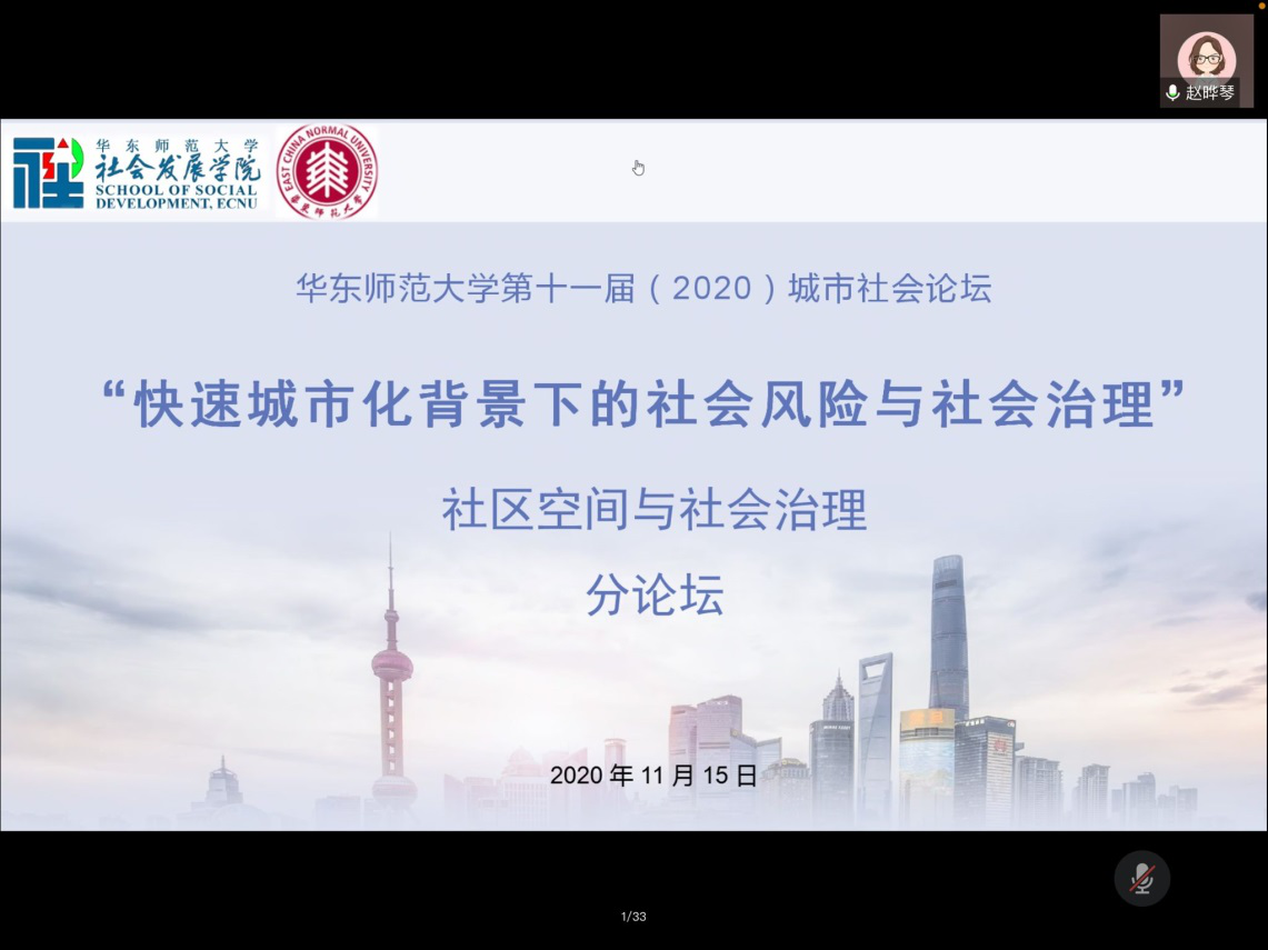 20201114-15日,东师范大学社会发展学院联合学校其他单位,于线上举办以 “快速城市化背景下的社会风险与社会治理”为主题的第十一届城市社会论坛 。为了同学们尽快适应研究生阶段的学习,及时掌握城市社会研究的前沿动向,发现自身的研究兴趣,举行“人文地理学学术沙龙”第十八期,此次活动黄佛君老师带领人文地理学专业的17名同学线上全程参加该学术论坛。
