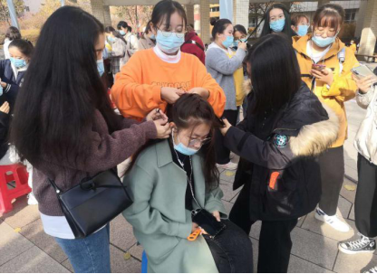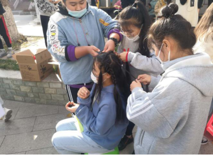 女生项目“花辫子,俏古丽”,大家分工明确,共同努力为漂亮的女舍友编出好看的头发,数量多种类好花样多。
