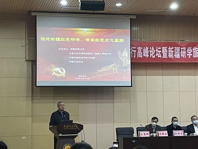 为献礼中国共产党百年华诞,传承革命薪火,扎牢信仰之根,讲好新疆红色故事,由乌鲁木齐交通旅游投资(集团)有限公司、中国地理学会研学工作组、新疆地理学会主办,新疆研学旅行研究中心、九州杯研学大赛组委会、新疆教育学会中学地理学科研究会及我校承办的“推进新疆红色研学,传承红色文化基因”研学旅行高峰论坛暨新疆研学旅行研究中心专业委员会2021年年会,于10月28、29日在我校昆仑校区召开。