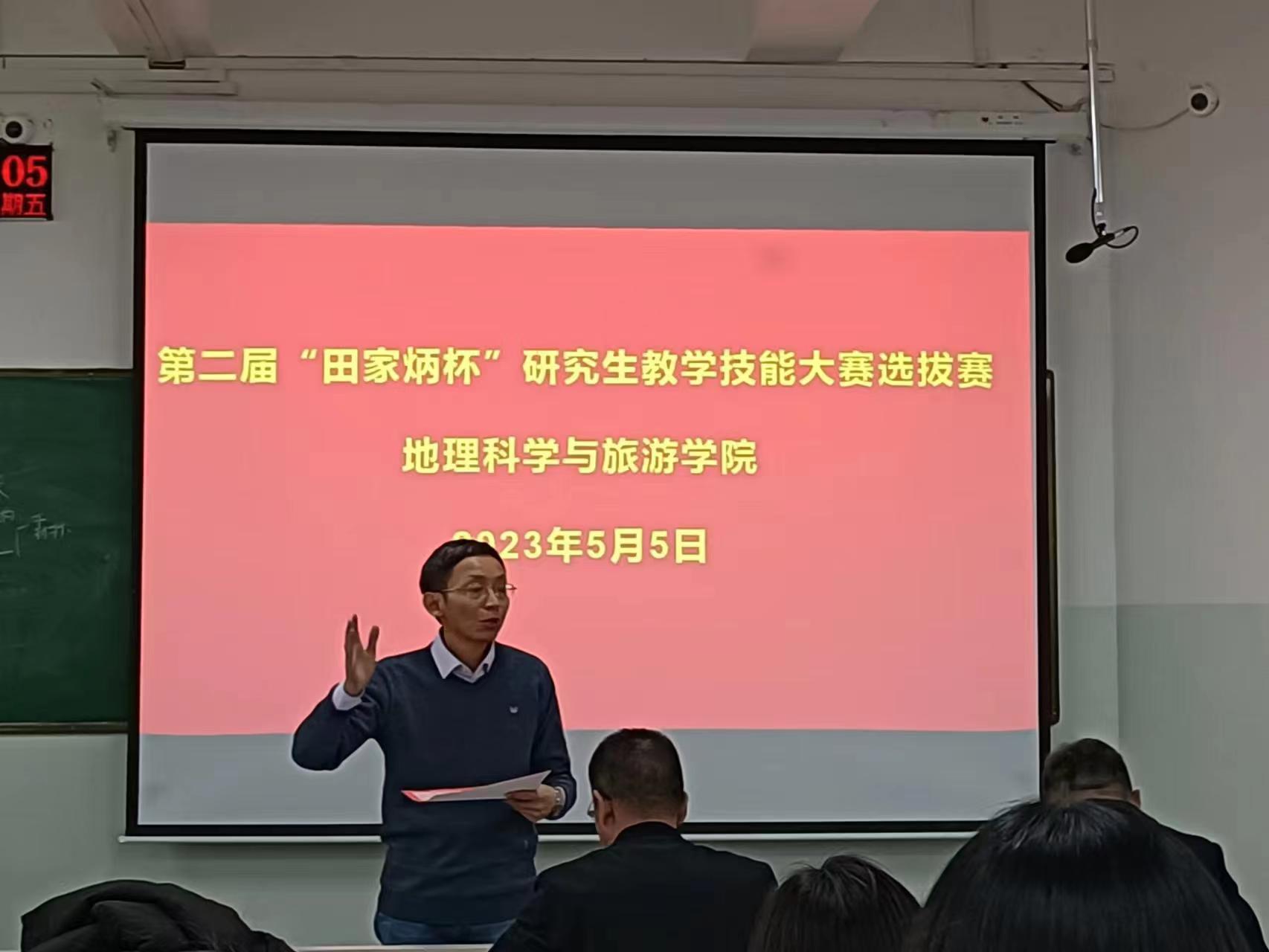 为进一步加强地理教育硕士专业学位研究生教育教学实践能力的培养、促进地理教育硕士的核心素养提升,第二届“田家炳杯”教育硕士研究生教学技能大赛选拔赛于2023年5月5日在我院成功举行。大赛选拔赛环节包括教学设计、课堂教学、现场答辩三个部分。本次大赛特邀必赢76net线路官网附属中学蓝毅高级教师担任评委主席,学院李艳红、刘云同、黄佛君、李勇老师组成评委专家组。