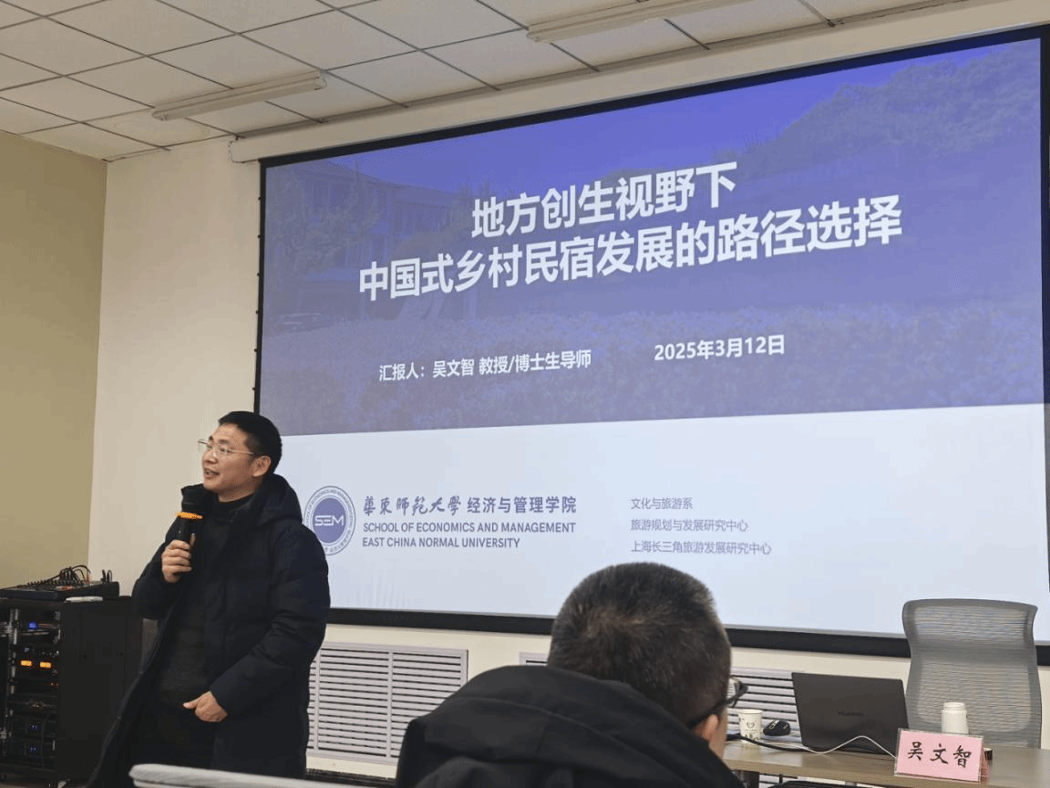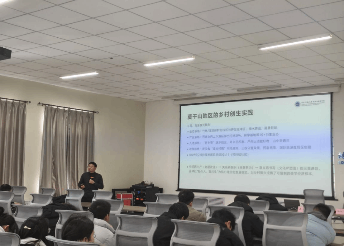 13日下午,吴文智教授围绕 “地方创生视野下中国式乡村民宿发展的路径选择”,进行了精彩的学术分享。他从地方创生的理论认知与实践、中国式乡村民宿发展的问题、乡村创生下民宿发展的路径选择等三方面,深入浅出地讲述了莫干山区乡村创生的实践成果,生动阐释了乡村民宿促进乡村旅游产业发展的理论逻辑和现实路径,包括一系列高质量的研究成果。吴老师的讲座对思考我院旅游管理专业人才培养路径、学科发展方向和学科服务地方的路径以积极启示。讲座后师生们与吴教授积极交流。如旅游管理专业硕士生就新疆民宿发展的实践问题及莫干山创生实践的具体过程与吴教授进行了互动;我院旅游系孙浩捷教授就新疆民宿发展路径、民宿如何带动新疆旅游产业发展等具体问题与吴教授进行了深入探讨。